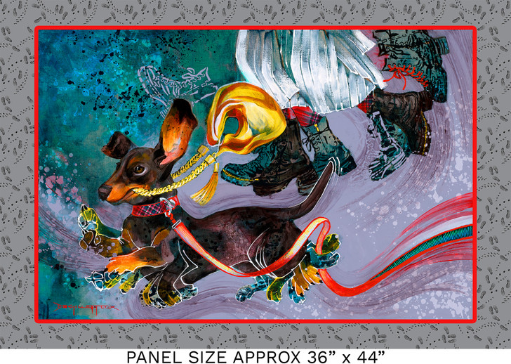 Fashion Dachshund Off the Leash 4000A Cotton Quilting Fabric 36 Inch Panel