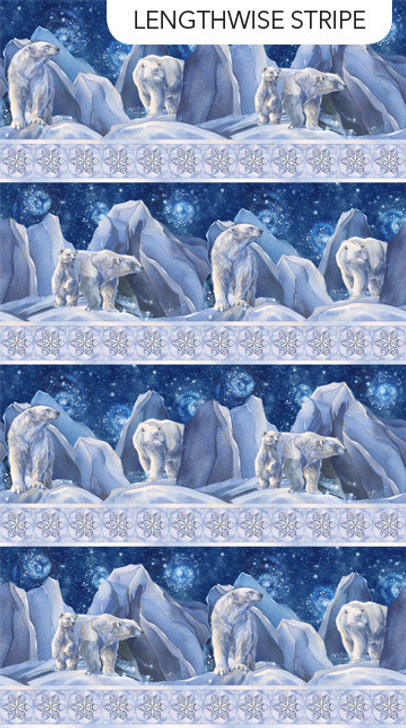 Polar Frost Polar Bear Border Stripe Dark Blue 24838-46 Cotton Quilting Fabric is from the Polar Frost Collection designed by Jody Bergsma for Northcott Fabrics Fabrics.
